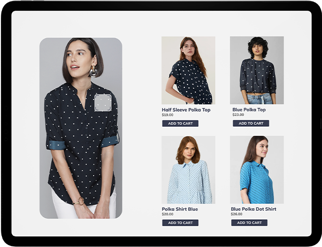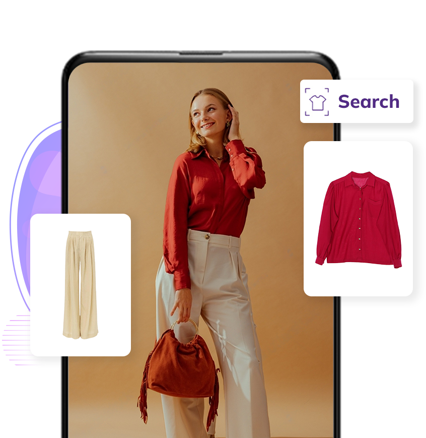 Our advanced AI search engine instantly recognizes various product attributes, including categories, colors, styles, and even intricate patterns. It easily identifies multiple products from a single image, enhancing product discovery for your shoppers, and increasing click-throughs, conversions and revenue.