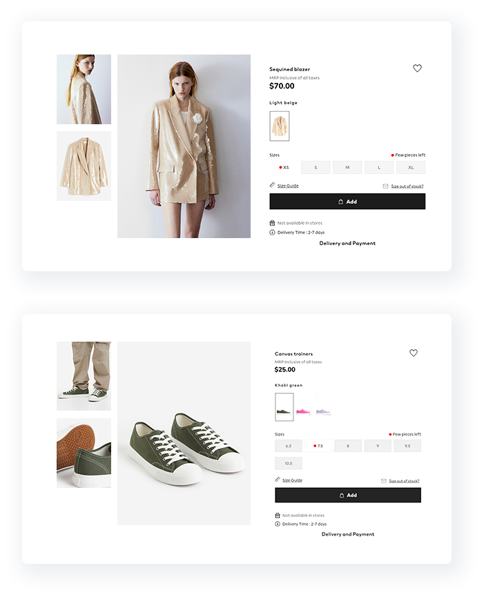The lightweight and fully responsive templates are built for speed and conversion, helping you sell more with just a few clicks. Additionally, with our preview functionality, you can easily get a feel of how visual search and product recommendations will look for your customers on your website!